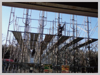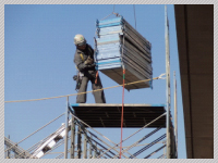 仮設工事、土木工事、営繕工事、各種常用、新築工事外部足場・内部足場組み立て解体、改修工事外部足場足場・内部足場組み立て解体、仮囲い組み立て解体、型枠支保工組み立て解体、吊り足場組み立て解体作業、棚足場組み立て解体作業、太陽光発電設置、設計図作成